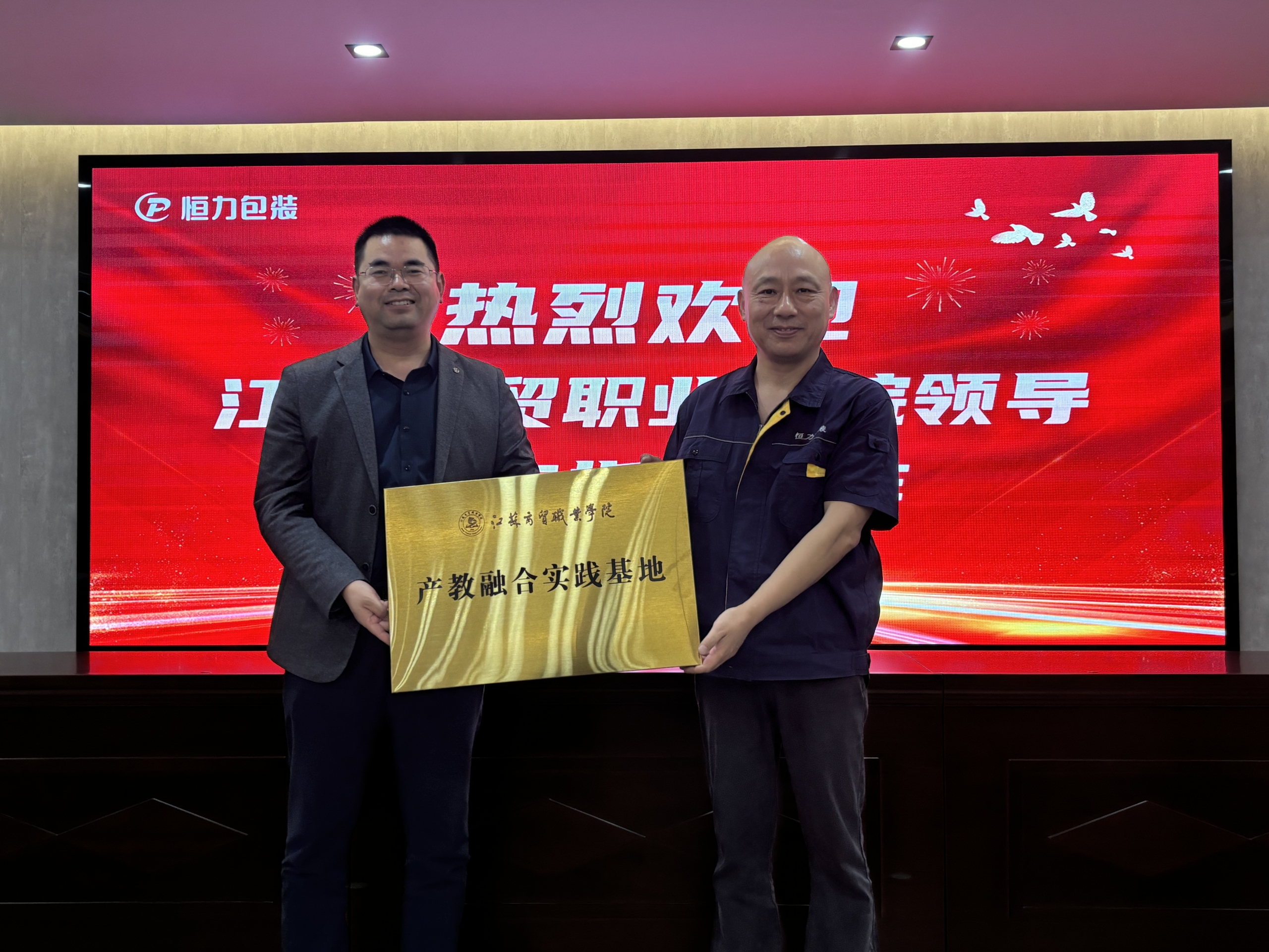4月18日下午,江苏商贸职业学院领导一行莅临恒力包装,双方共同举行了“校企合作实习基地”及“产教融合实践基地”挂牌仪式,并围绕产教融合、协同育人等议题展开深入座谈。此次合作标志着双方在资源共享、优势互补方面迈出了坚实一步,为培养高素质技术技能人才搭建了重要平台。