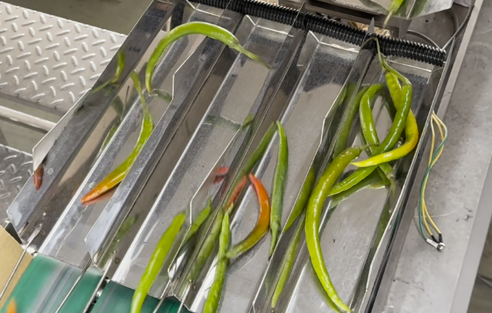 本次到访的浙大研究项目组,聚焦贵州精品辣椒产业升级课题,致力于打破传统辣椒分选包装依赖人工的瓶颈,推动地方特色农产品走向标准化、自动化、规模化。客户特意携带产地直供的新鲜辣椒到场,全程观摩设备运行全过程。设备启动后,针对辣椒不规则的形态、不同大小规格,平稳完成送料、全流程走料顺畅、运行稳定,不卡料,不堵料,非常适配辣椒这类农产品的生产需求,优异的稳定性和适配性,当场获得专家组一致好评。