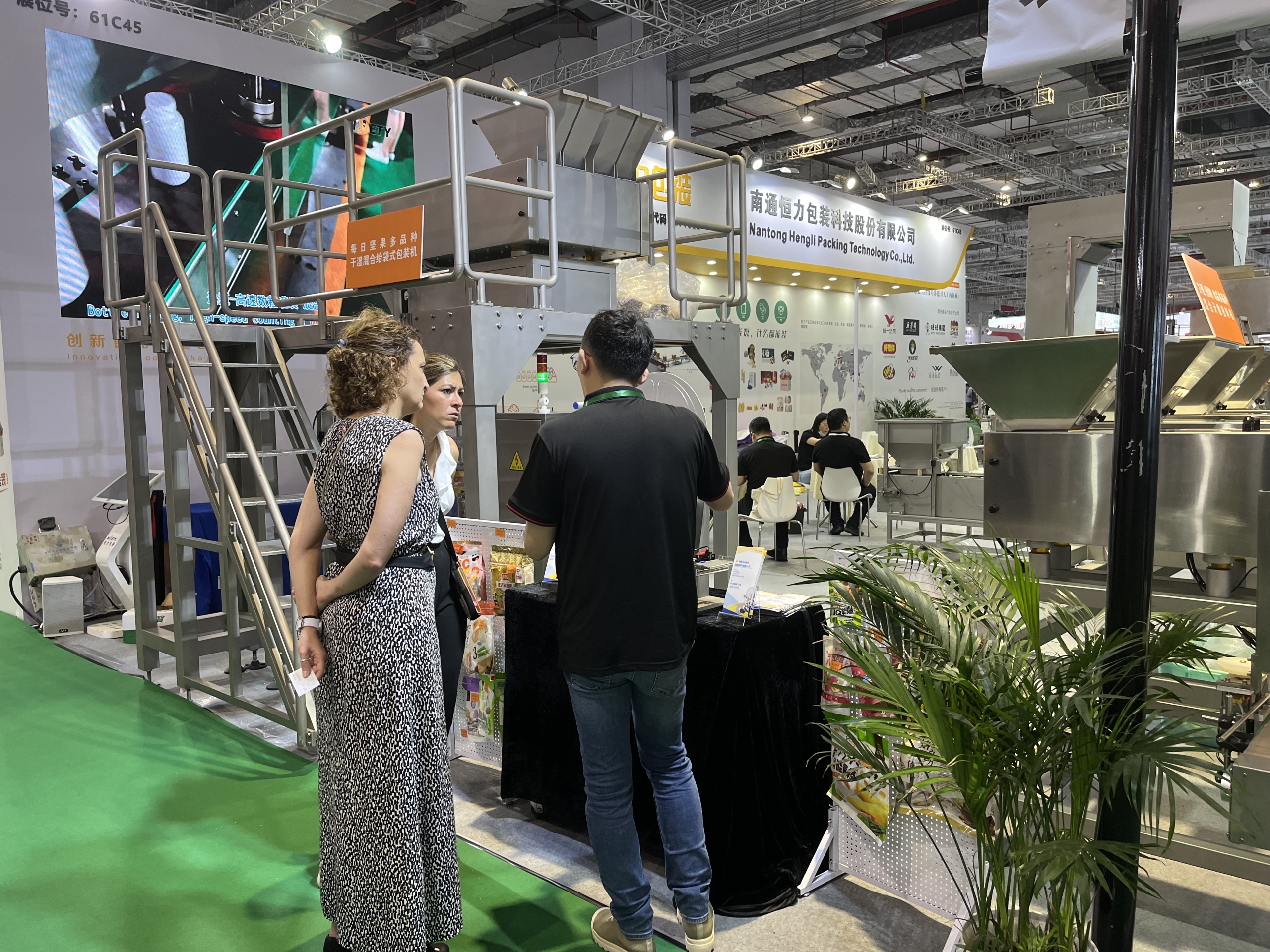 这场热闹的展会还吸引了许多外籍客户,咱们的业务员人均一口流利的英语同客户交流,介绍设备性能,演示操作过程。来自美国、加拿大、孟加拉等世界各地的海外客户都被恒力包装的专业和细致所折服。